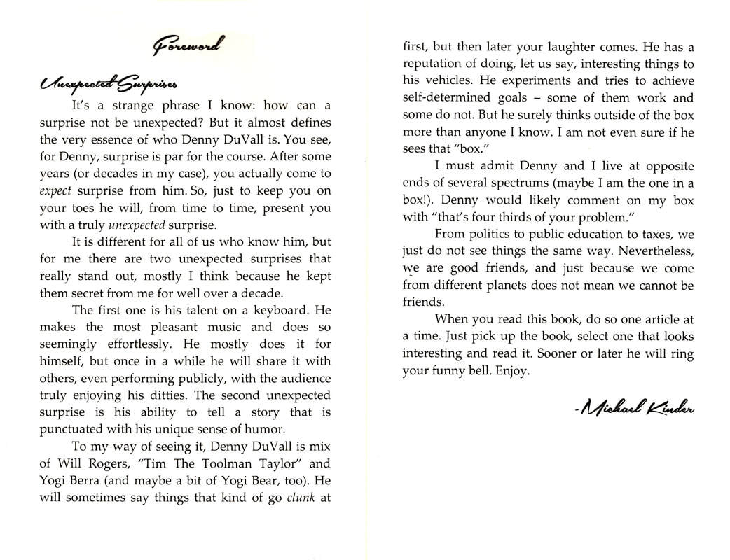 Moving from kids to the older set, One of Denny’s favorite pastimes is ruffling official feathers, such as those of the “experts” who came up with Daylight Savings Time. In that chapter, one can feel the sting of biting sarcasm in Denny’s comparison with local Indian culture and that of their Caucasian counterparts, using a quote by a Native American elder:
