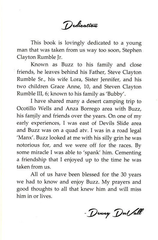 Denny covers 70 chapter-topics in his book, beginning with his poignant reflections on dealing with a cancer diagnosis. He also has many first-hand observations on life in and around Borrego, from living off the grid, to car care, to the horrors of his Julian High School days.