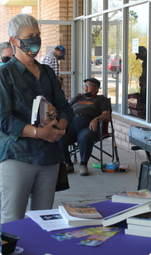 Denny’s first book, “That’s My Story, and I’m Sticking to It,” was the subject of a Covid-protocol book signing outside the old library on Saturday, March 28, well-attended by over two dozen fans of his columns for our newspaper. While I also wrote and edited for the Sun, I became a friend and a fan, too, quickly realizing that Denny had a style – unique, simple, direct, but also dead-pan funny when he put his mind to it. One of his Sun pieces covering an art exhibit in Julian was simply fall-down funny, and in it he never once used “obsequious” or “countervailing influences” in a sentence. Another piece of art advice from his book:
